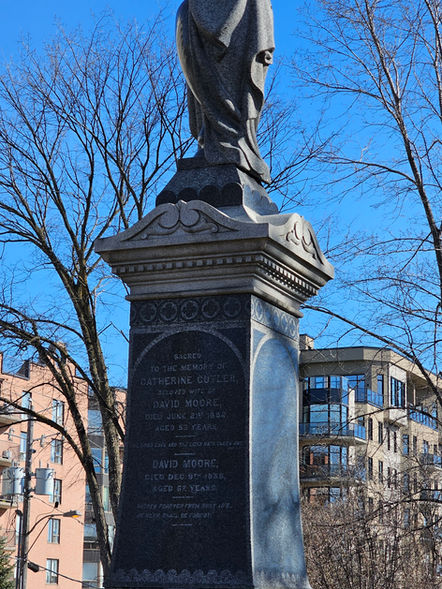 Lorsque l'on observe le lot familial des Moore, on ne peut pas s'empêcher de remarquer l'imposante sculpture qui se trouve au milieu du terrain entouré d'une clôture en fer forgé. Ce lot représente bien la richesse de cette famille plus ou moins connue de la région, mais qui a laissé des traces concrètes à travers la ville.